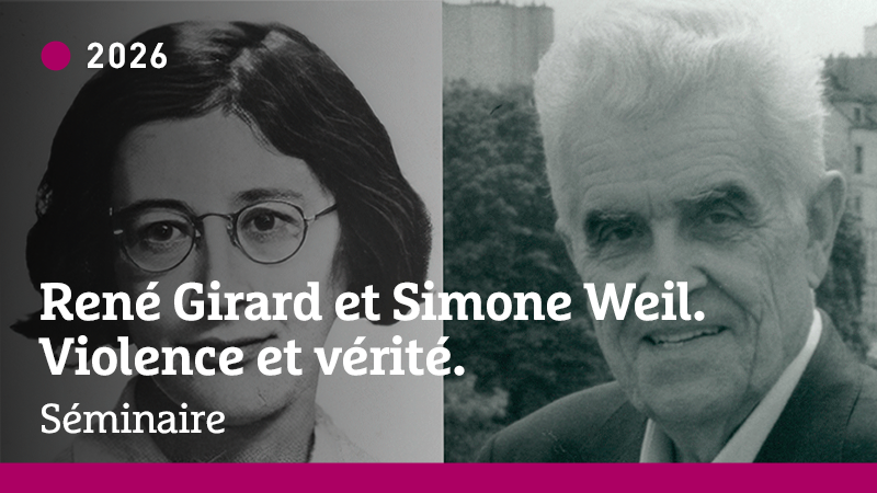 Six rendez-vous qui éclaireront, aujourd’hui l’une par l’autre, la métaphysique religieuse de Simone Weil et l’herméneutique anthropologique de René Girard. Proposés par la Faculté de Philosophie et l'Association Recherches Mimétiques. Du 6 janvier au 2 juin 2026.